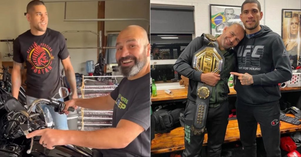 Former UFC middleweight champion, Alex Pereira, shares a special moment with his close friend Glover Teixeira.